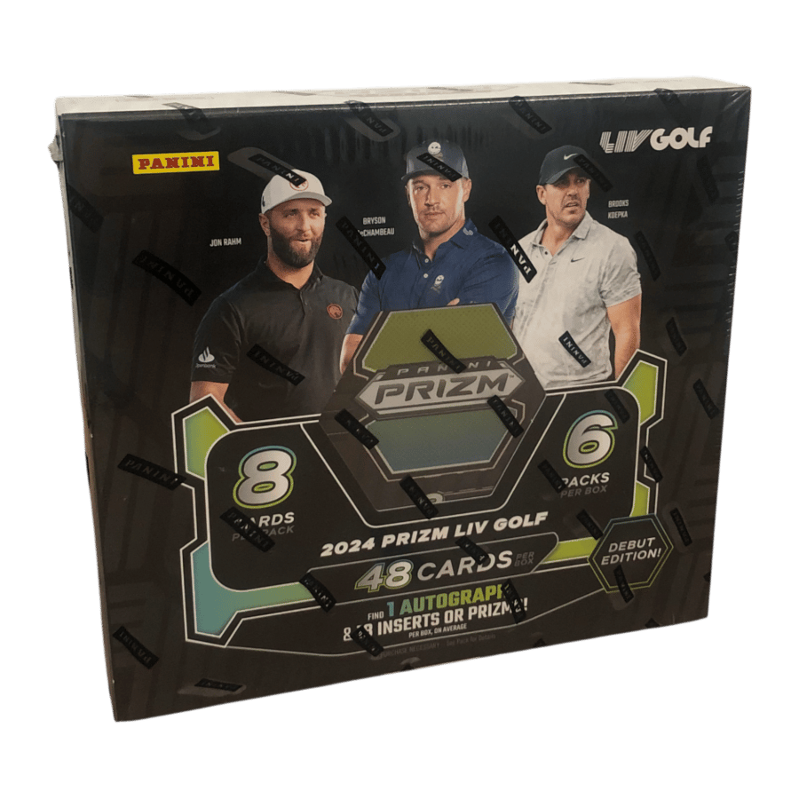 Prizm LIV Golf is teeing off with a stellar collection of the sport’s finest athletes! Find one autographs and 18 inserts or Prizm Parallels per box on average! Look for the first officially-licensed trading cards of some of golf’s top stars, including Jon Rahm, Brooks Koepka and Talor Gooch!